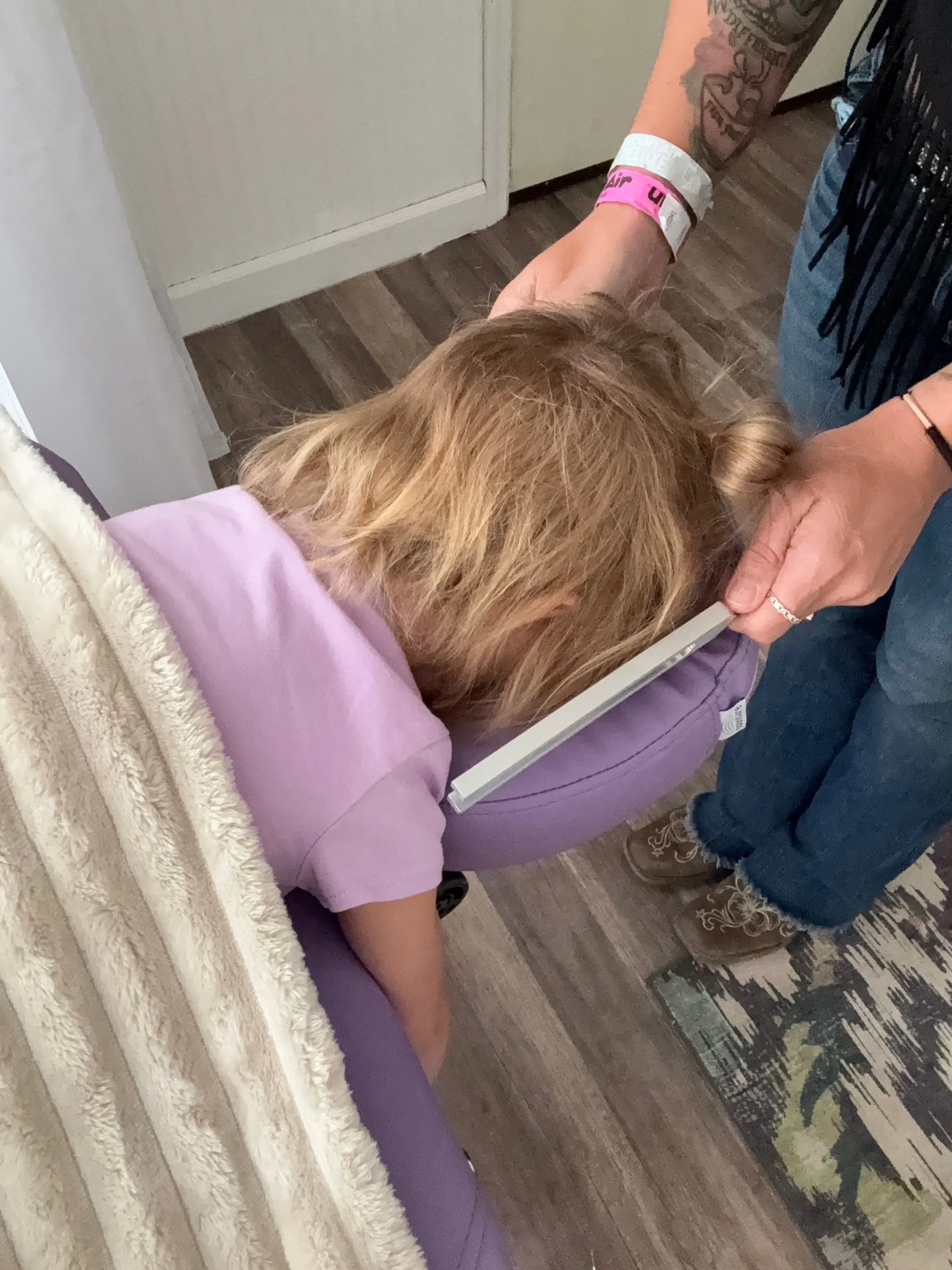 Let the deep, pulsing beat of the buffalo drum carry you into a deliciously dreamy state of relaxation. This rhythmic journey helps quiet mental chatter so your body can melt into the moment. You’ll feel grounded, energized, and just a little bit enchanted as the vibrations ripple through you. Expect a playful mix of soothing sound, guided intention, and a pinch of magic. Come ready to release stress and leave with your spirit humming. Available with any service. The sensastion feels as if you are putting on your "armor."